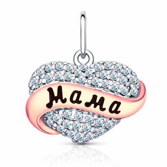 Herz Anhänger "Mama", Silber 925, Emailie und Zirkonia