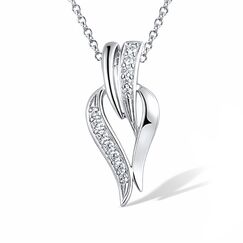 Herzförmiger Anhänger mit Engelsflügeln aus 925 Silber mit Zirkonia + Silberkette Gratis