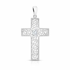 Крестик из серебра 925 пробы с фианитами – в комплекте с серебряной цепочкой
