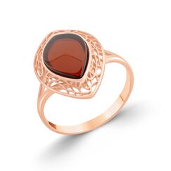 Damenring aus 925 Silber mit Cognac-Bernstein, rosévergoldet, Größe 20.5 mm