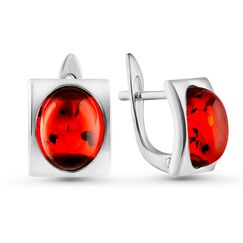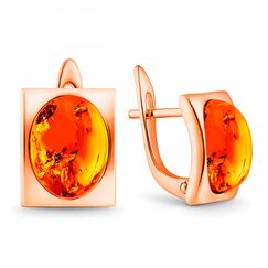 Серьги из позолоченного серебра 925 пробы с камнями янтаря красного цвета