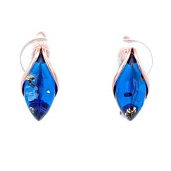Серьги из позолоченного серебра 925 пробы с камнями из синего янтаря