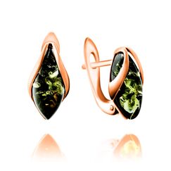 Серьги из позолоченного серебра 925 пробы с камнями из оливкового янтаря