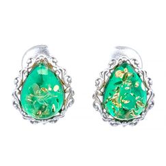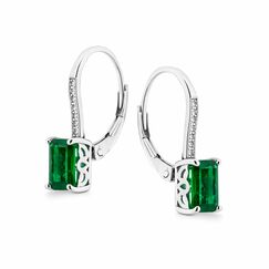 Серьги из серебра 925 пробы с зелеными и мелкими бесцветными цирконами