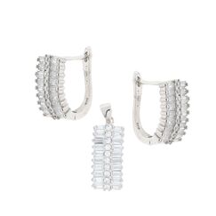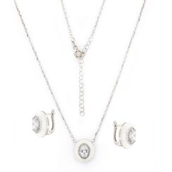 Set: Ohrringe + Collier aus 925 Silber, mit Zirkonia, umrahmt in weißer Emaille