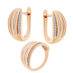 Schmuckset aus 925 Silber: Ohrringe + Damenring, vergoldet 18,5 mm (58)