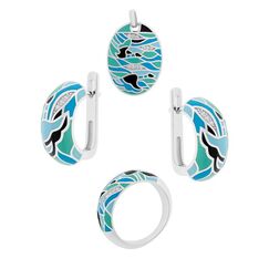 Комплект украшений из серебра 925 пробы: серьги + подвеска + женское кольцо