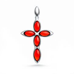 Kreuz Anhänger aus 925 Silber mit Kirschbernstein