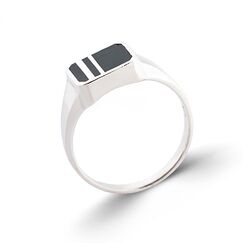 Quadratischer Herrenring aus 925 Silber mit schwarzer Emaille, Größe 22 mm