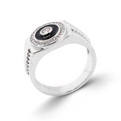 Runder Herrenring aus 925 Silber mit schwarzer Emaille, Größe 21 mm
