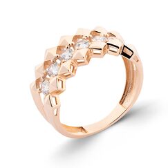 Damenring aus 585 Rotgold mit geometrischem Muster und Zirkonia, Größe 17 mm
