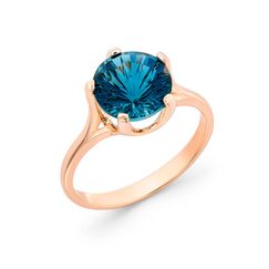 Damenring aus 585 Rotgold mit blauem Topas, Gr. 17.5 mm