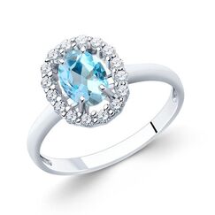 Damenring mit blauem Topas unf Zirkonia Gr-18mm