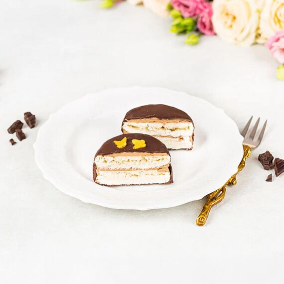 Genießen Sie eine verführerische Kombination aus luftigem Baiser und edler Schokolade. Dieses exquisite Dessert besteht aus zwei Schichten klassischem, weißem Baiser, umhüllt von zarter Buttercreme und überzogen mit feiner Schokolade. Die elegante Verzierung mit Bitterschokolade und goldenen Zuckersternen oder Schmetterlingen verleiht diesem süßen Kunstwerk eine besondere Note. Perfekt für Feinschmecker und festliche Anlässe!Eigenschaften: