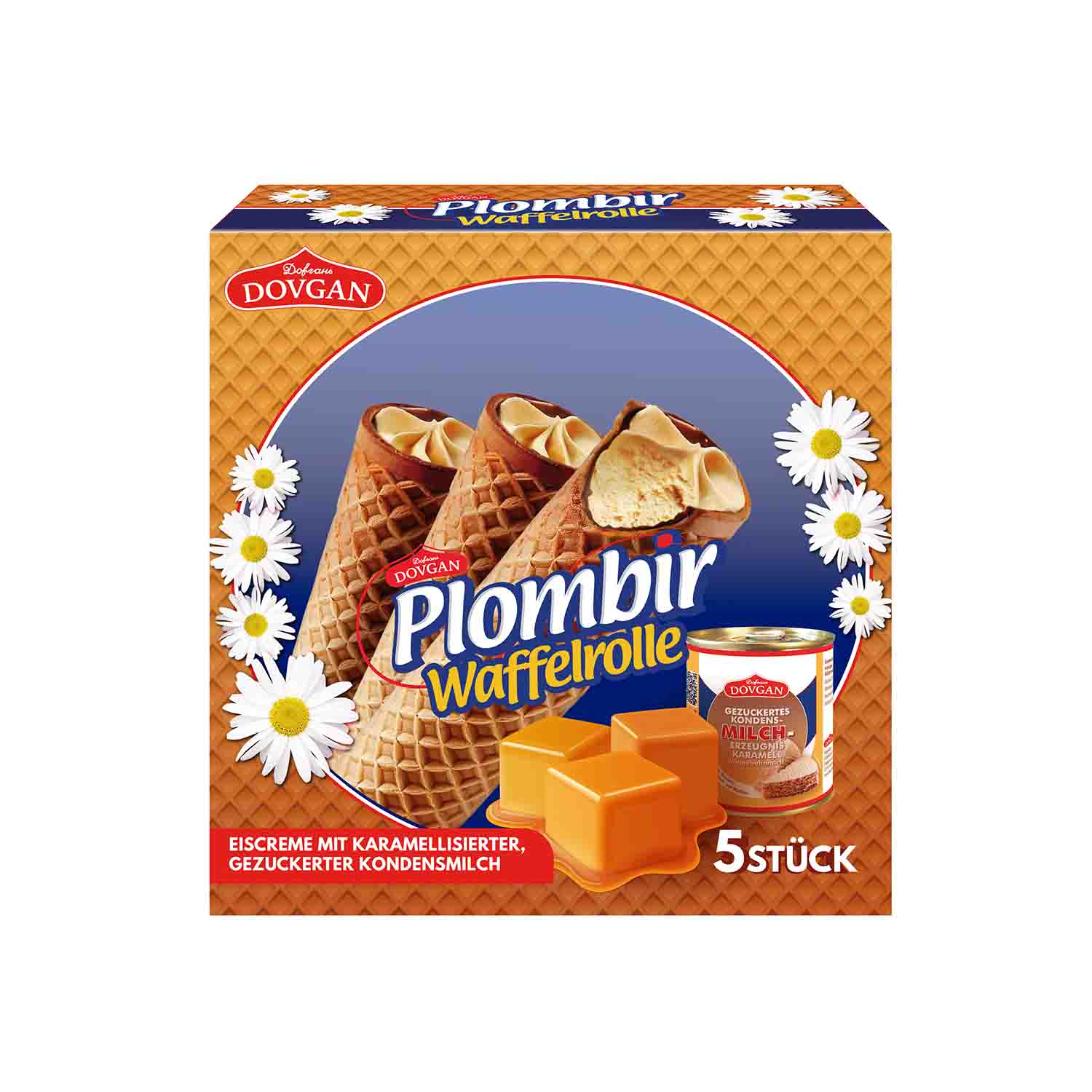 DOVGAN Plombir Waffelrolle Eiscreme mit karamellisierter, gezuckerter Kondensmilch, 5 Stück, 475 ml