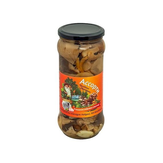 Zutaten: Shiitake-Pilze (Lentinula edodes), Wasser, Zucker, Salz, Säureregulator: Essigsäure, Antioxidationsmittel: Ascorbinsäure, Dill, Knoblauch, Zwiebeln, gelbe Senfkörner, Karotten, Piment, schwarzer Pfeffer.