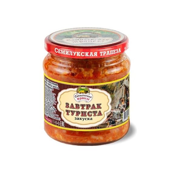 Das „Touristenfrühstück“ von Semilukskaya Trapeza ist eine klassische osteuropäische Gemüsezubereitung, die an die beliebten Konserven aus sowjetischer Zeit erinnert. Anders als die bekannten Fleisch- oder Fischvarianten basiert diese Version auf knackigem Weißkraut und Reis und überzeugt durch ihren ausgewogenen, herzhaften Geschmack.Zart geschmortes Weißkraut wird mit aromatischer Paprika, saftigen Karotten und feinen Zwiebeln kombiniert und in einer mild-würzigen Tomatenbasis schonend gegart. Die Zugabe von Reis macht dieses Gericht besonders sättigend und verwandelt es in eine vollwertige, verzehrfertige Mahlzeit.