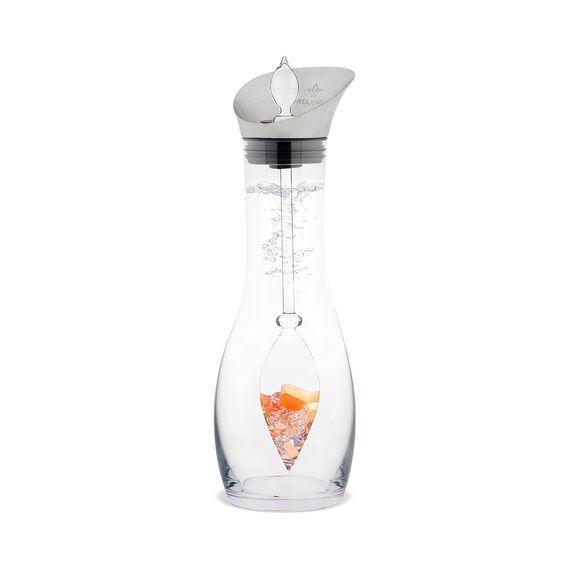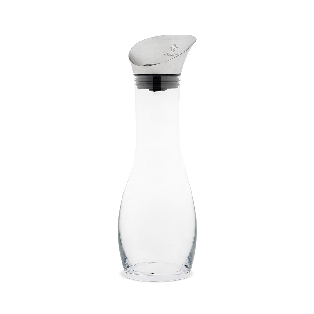 Genau so sollte das Wasser genossen werden! Vergessen Sie die gewöhnlichen Plastikkrüge und gönnen Sie sich das Vergnügen, aus einer eleganten Glaskaraffe mit einer glanzvollen, mit wertvollen Kristallen gefüllten Phiole zu trinken!Dieses exklusive Set, bestehend aus Glaskaraffe und Edelsteinphiole, ist perfekt, um Dein Wasser stilvoll zu beleben. Unsere Edelsteinmischungen basieren auf altbewährten Traditionen. Jeder Edelsteinstab wird aus hochwertigem, schadstofffreiem Glas von Meisterhand in einem aufwendigen und patentierten Herstellungsverfahren mundgeblasen. Gefüllt werden die Glasstäbe ausschließlich mit fair gehandelten, handverlesenen und sorgfältig gereinigten Edelsteinen. Zuverlässig und scheinbar schwebend wird er von der außergewöhnlichen Glaskaraffe gehalten.