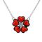 Halskette aus 925 Sterlingsilber mit Anhänger aus 5 herzförmigen Bernsteinen in Blumenform und Zirkonia