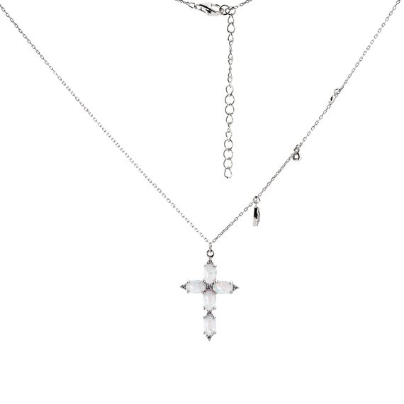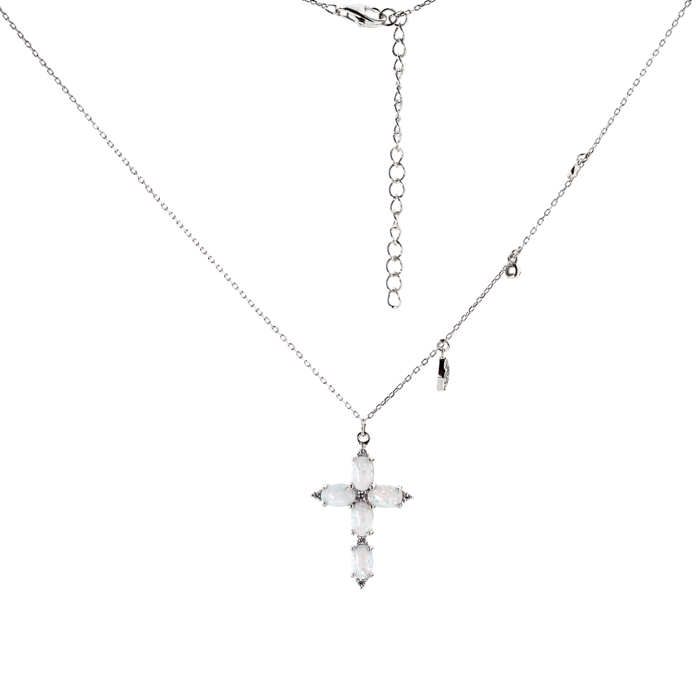 Ankerkette aus 925 Silber mit einem Kreuzanhänger und Opalen