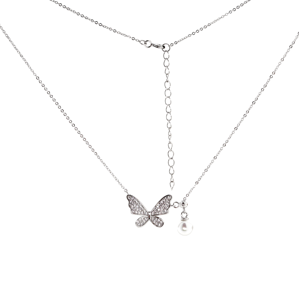 Halskette in Schmetterlingsform aus 925 Silber, mit Zirkonia und einer Perle