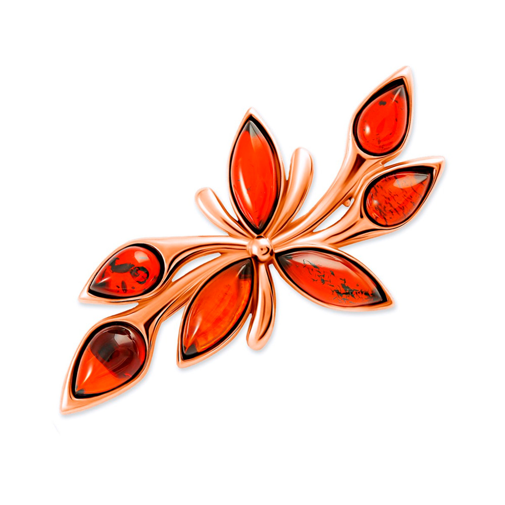 Brosche aus vergoldetem 925 Silber mit roten Bernsteinen