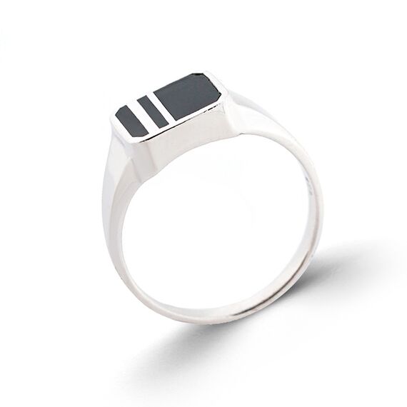Quadratischer Herrenring aus 925 Silber mit schwarzer Emaille