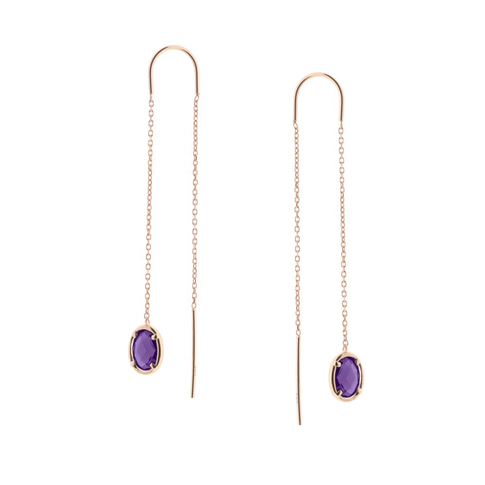 Kettenohrringe aus 585 Rotgold mit lila Zirkonia