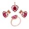 Schmuckset aus 925 Silber mit roten und weißen Zirkonia: Ohrstecker, Anhänger & Damenring