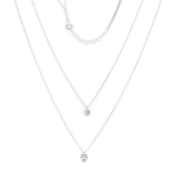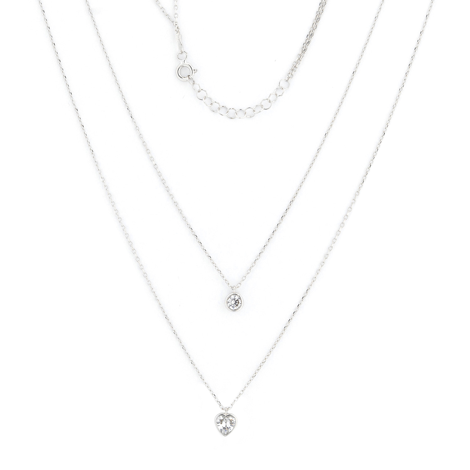 Collier zweireihig aus 925 Silber mit kleinem Herzchen und Zirkonia