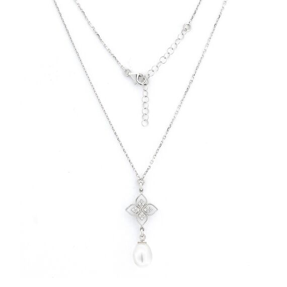 Collier mit einem Blütenmotiv und Perlenanhänger aus 925 Silber