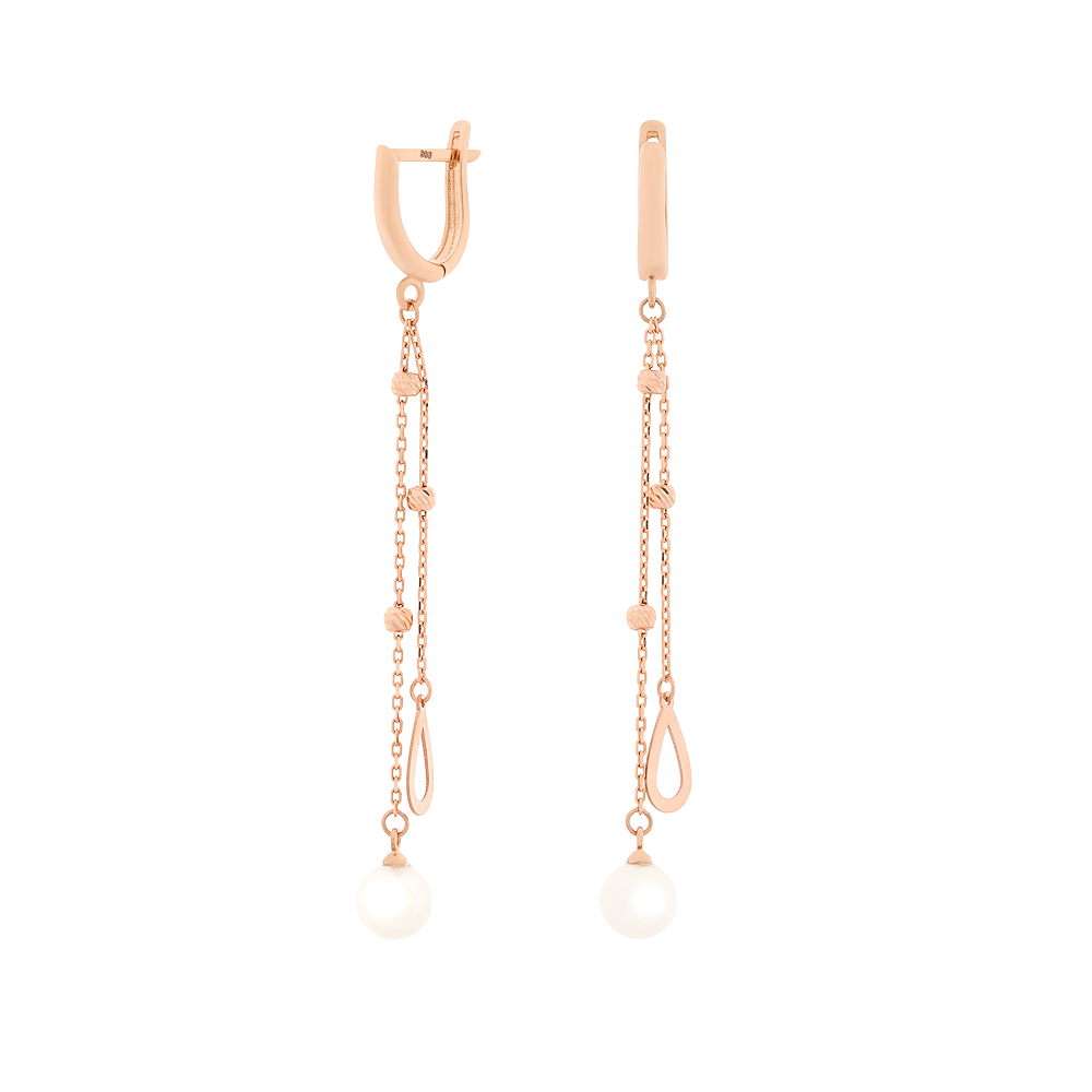Ketten-Ohrhänger aus 585 Rotgold mit Perlen und kleinen Gold-Kugelchen