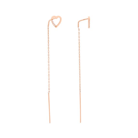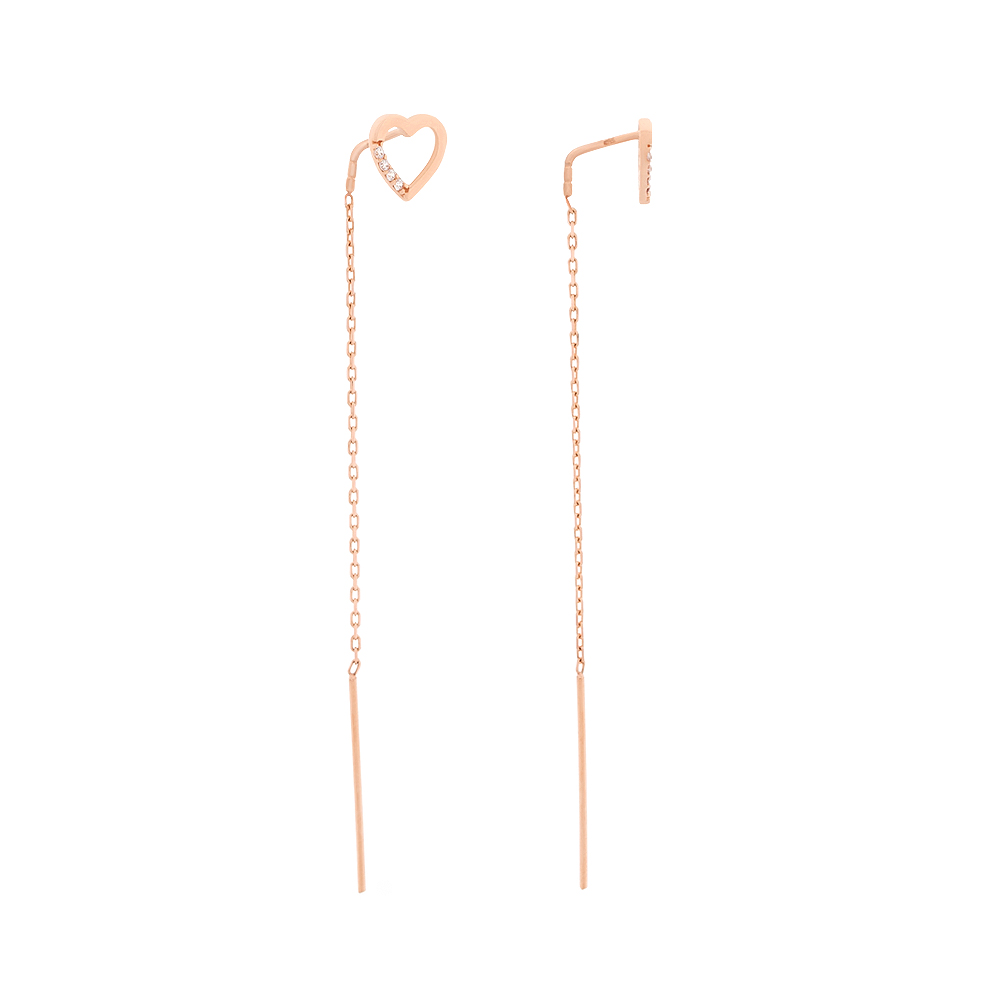 Durchzieher Ohrringe Herz aus 585 Rotgold mit Zirkonia