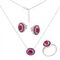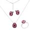 Schmuckset aus 925 Silber mit roten und farblosen Zirkonia in ovaler Form: Ohrringe + Halskette mit Anhänger + Damenring, Größe 18 mm