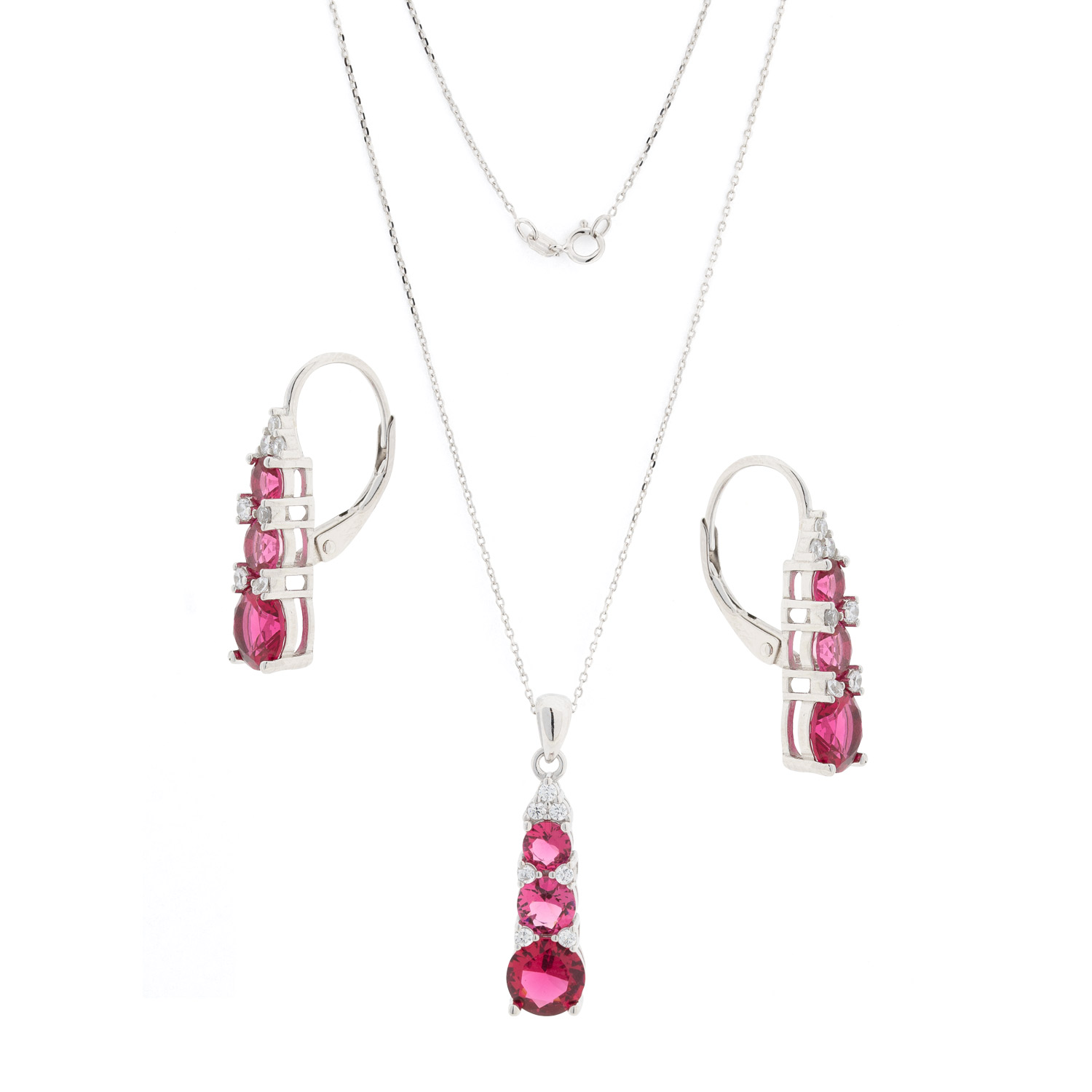 Schmuck-Set: Kaufe Ohrringe aus 925 Silber mit roten Zirkonia und erhalte passenden Kette mit Anhänger geschenkt!