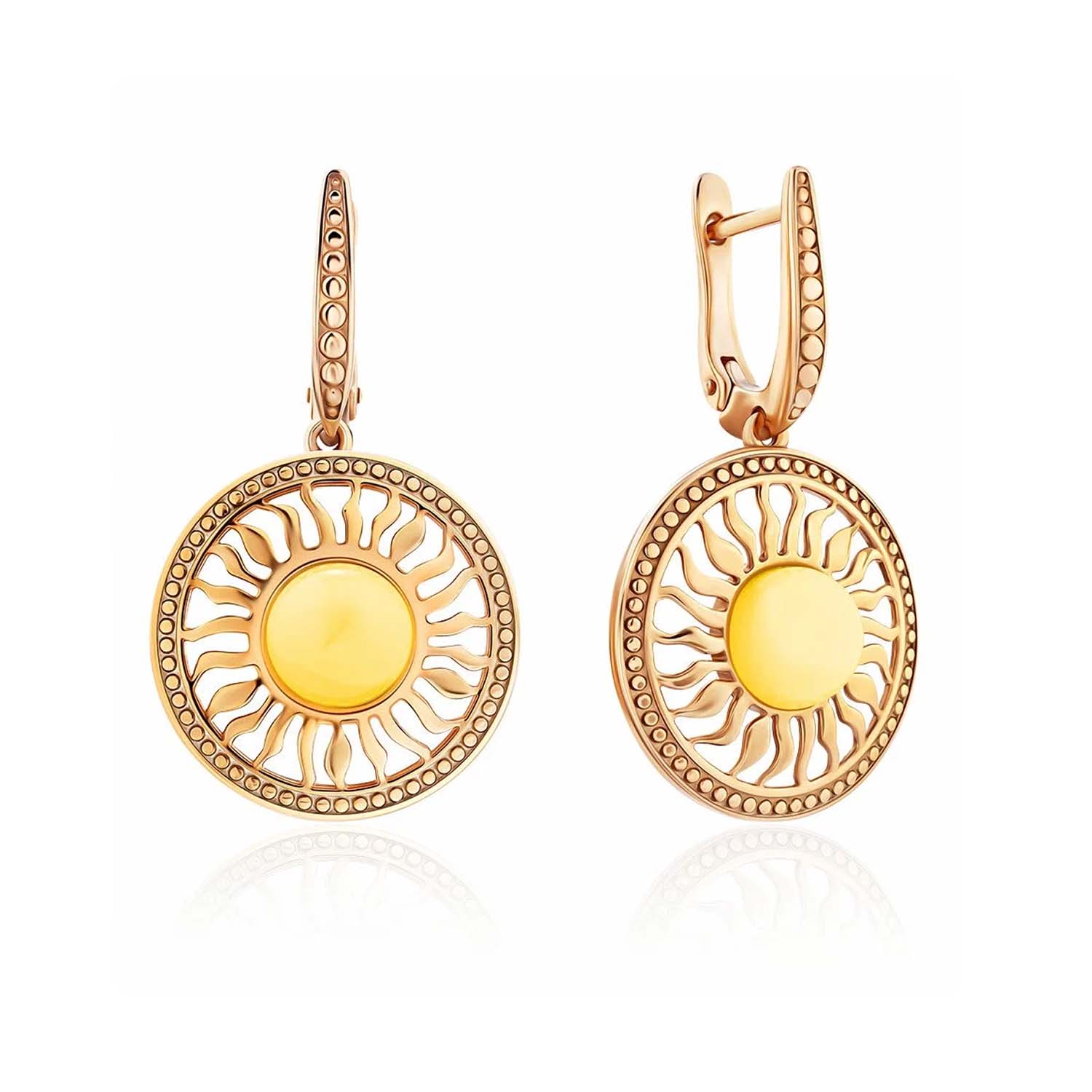 Ohrhänger aus vergoldetem 925 Sterlingsilber mit gelben Milchbernsteinen "Sonne"