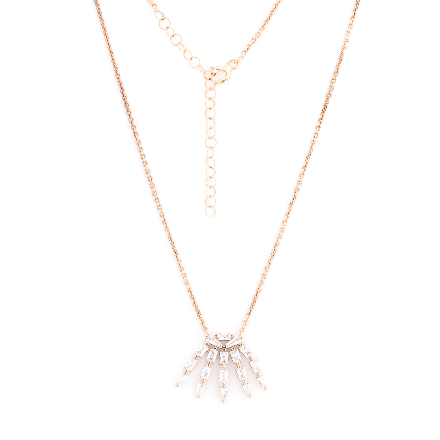Dieses stilvolle Collier aus 925 Sterling Silber besticht durch seine zeitlose Eleganz und filigrane Verarbeitung. Der Anhänger, verziert mit funkelnden Zirkonia-Steinen, erinnert an die Strahlen einer aufgehenden Sonne, die jeden Blick auf sich zieht. Die schimmernden Steine reflektieren das Licht und verleihen dem Schmuckstück einen glamourösen Glanz, der perfekt zu besonderen Anlässen oder als edles Accessoire im Alltag getragen werden kann.Dank des hochwertigen 925 Sterling Silbers bietet das Collier nicht nur optische Eleganz, sondern auch eine lange Haltbarkeit. Die feine Kette sorgt für ein angenehmes Tragegefühl und rundet das harmonische Design des Anhängers ab.