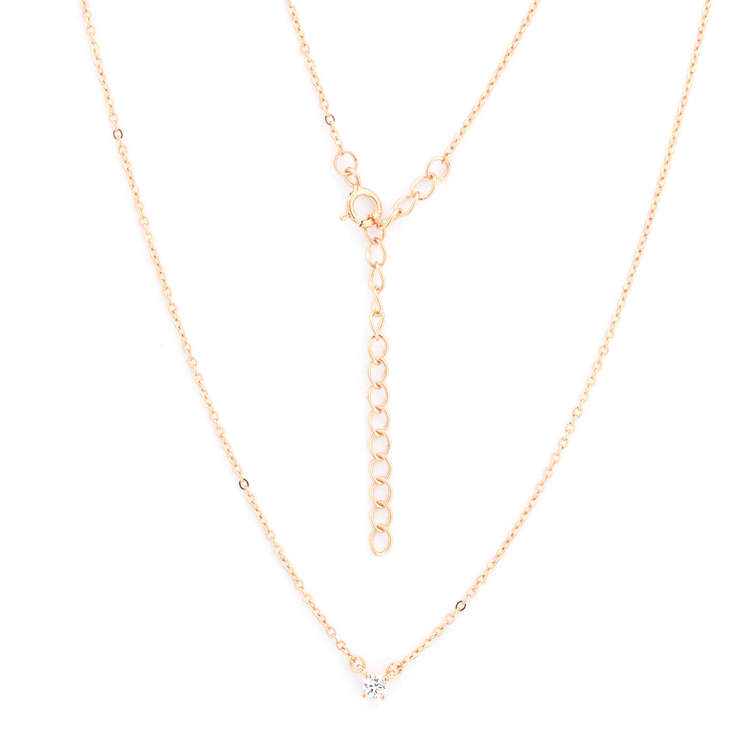 Collier aus 925 Silber mit kleinem Zirkonia in Krappenfassung, vergoldet, Federringverschluss
