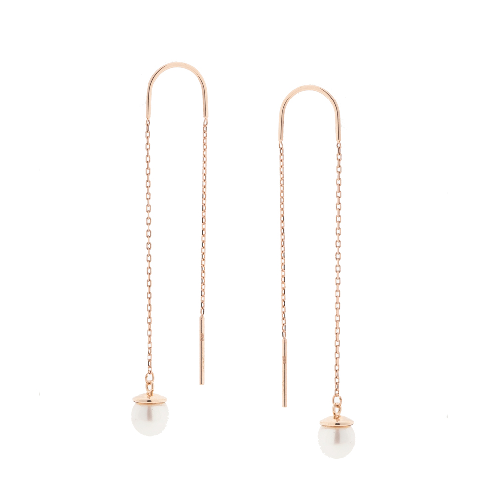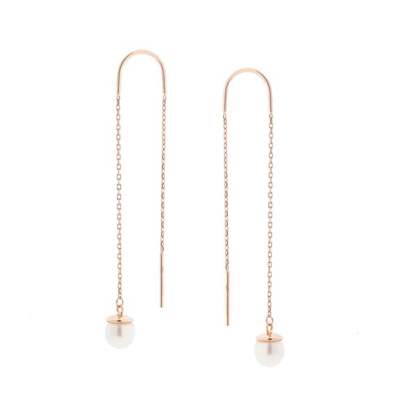 Durchzieher Ohrhänger aus 585 Rotgold mit Perlen