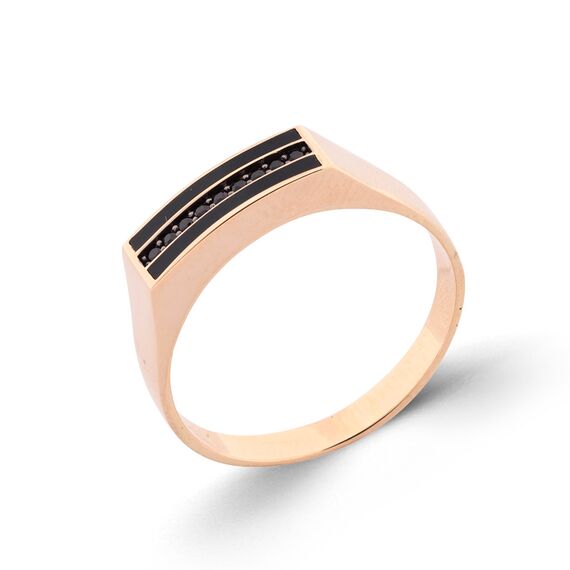 Herrenring aus 585 Rotgold mit schwarzer Emaille und schwarzen Zirkonia