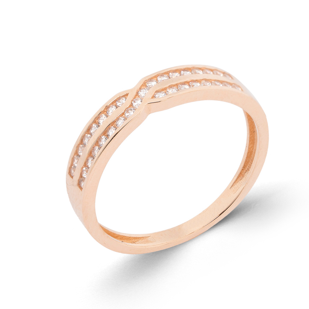 Damenring aus 585 Rotgold mit Zirkonia 2-reihig