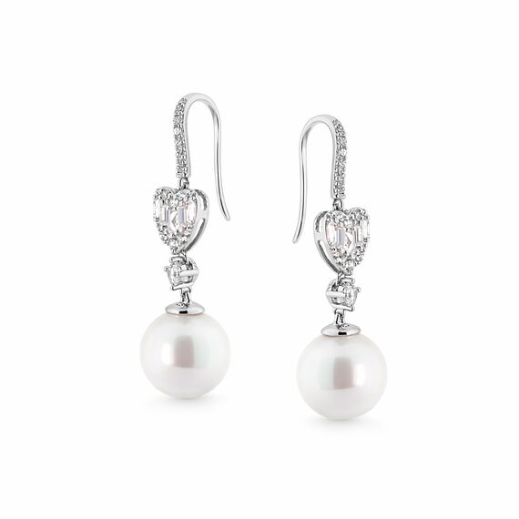 Ohrringe aus 925 Silber mit Zirkonia in Herzform und Perle