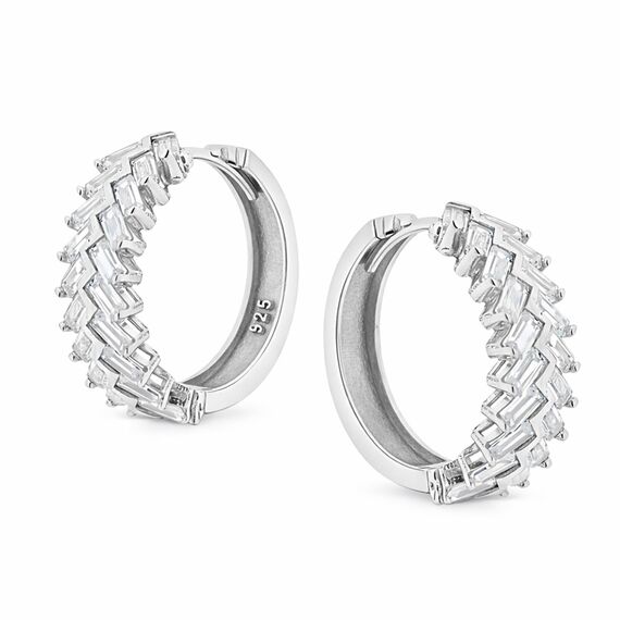 Creolen aus 925 Silber in Fischgrätenmuster mit Zirkonia