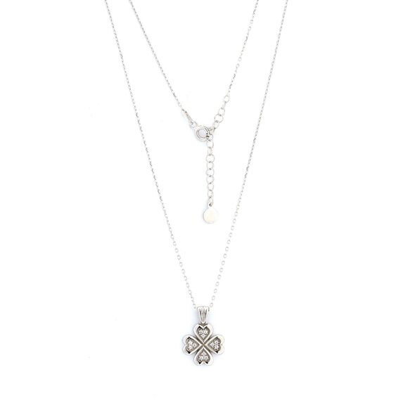 Collier aus 925 Silber mit einem Kleeblatt-Anhänger mit Swarovski Zirkonia, Federringverschluss