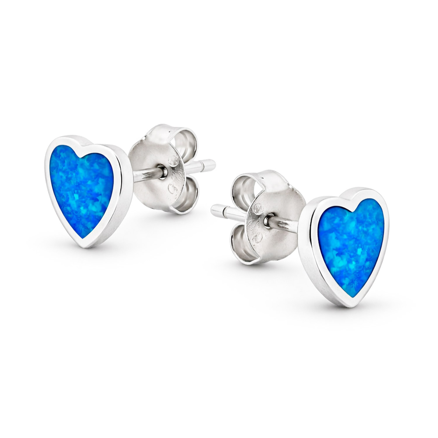 Ohrstecker aus 925 Silber in Herzform mit blauem Opal