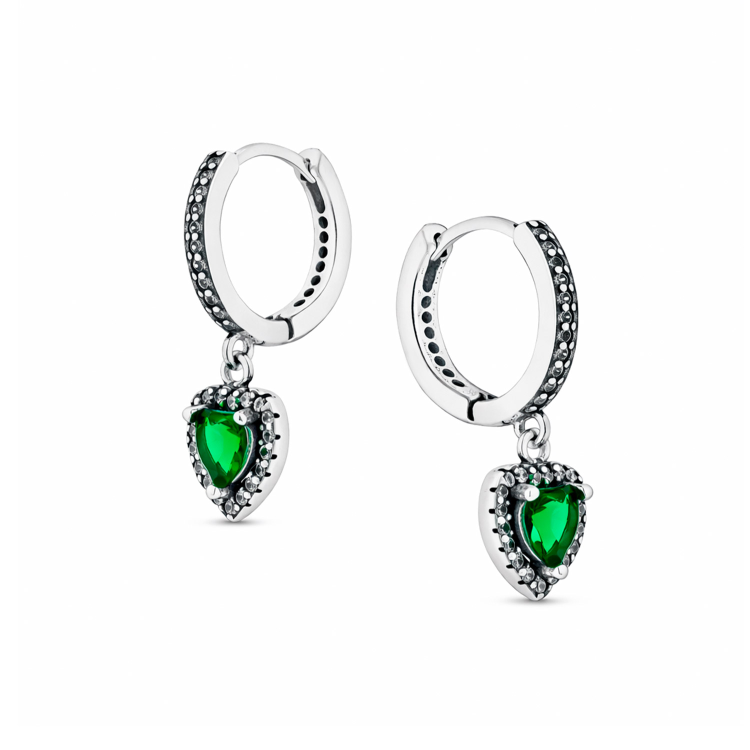 Creolen aus 925 Silber mit herzförmigen Zirkonia-Anhänger in drei Farbvarianten