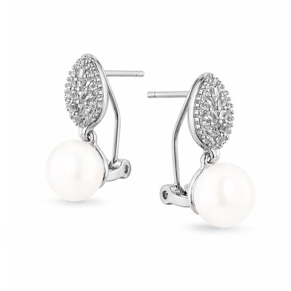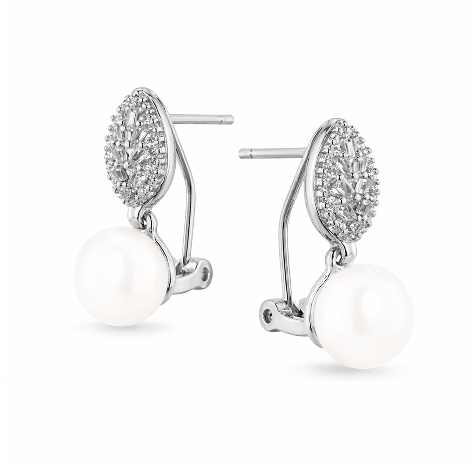 Ohrringe aus 925 Silber mit Perlen und farblosen Zirkonia