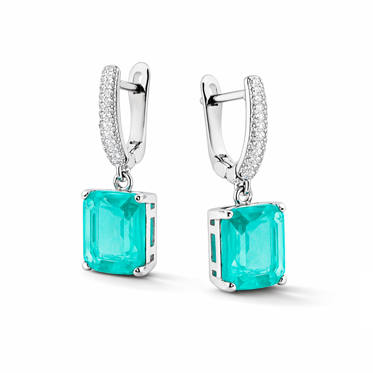Quadratische Ohrringe aus 925 Silber mit türkisfarbenen und weißen Zirkonia