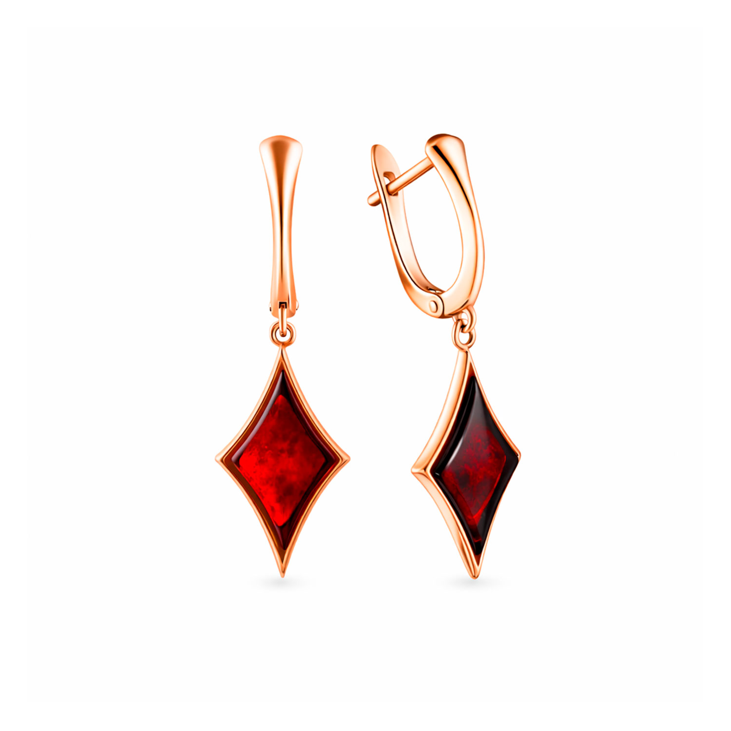 Ohrhänger aus vergoldetem 925 Sterlingsilber mit cognacfarbenen, rautenförmigen Bernsteinen