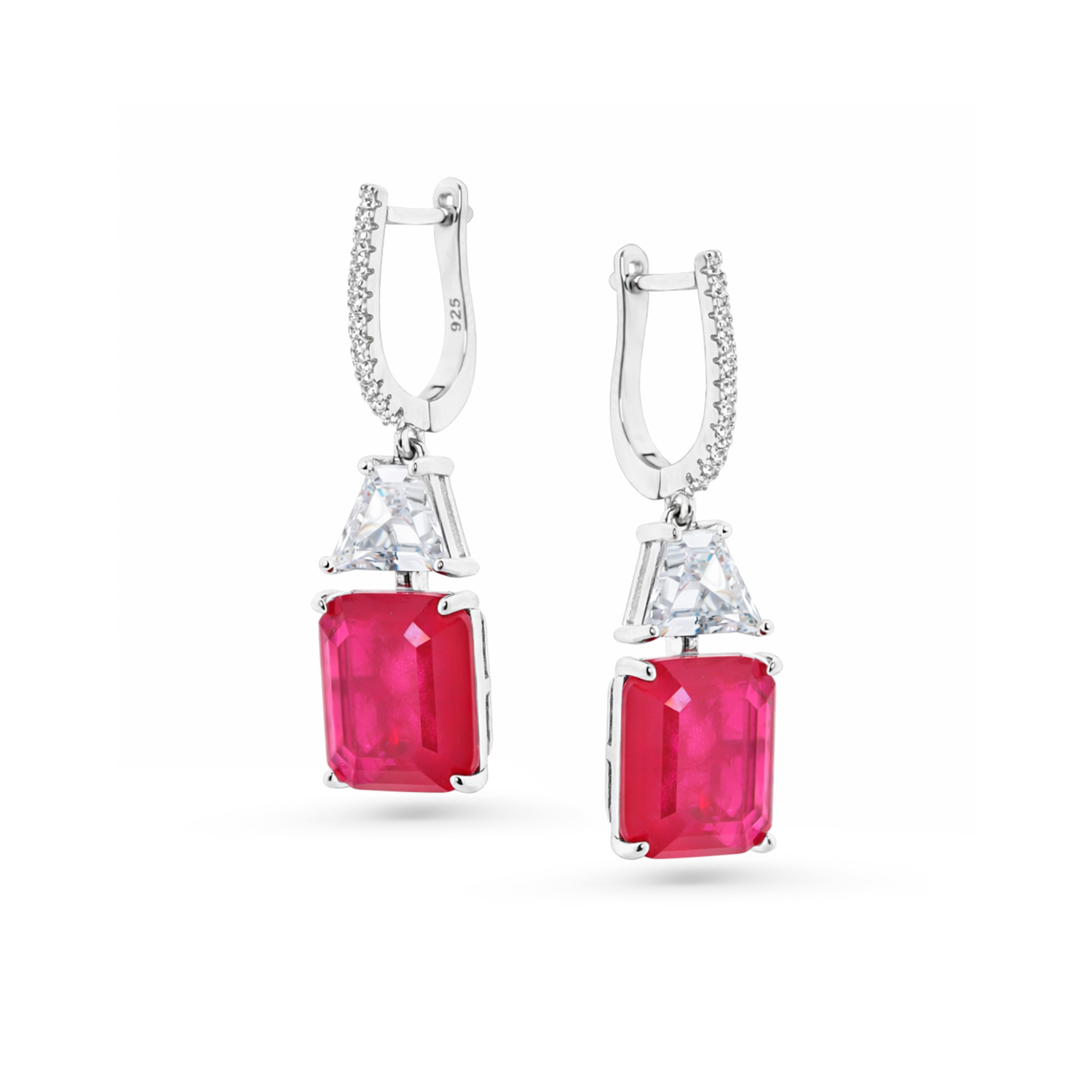 Ohrhänger aus 925 Silber mit roten und farblosen Zirkonia